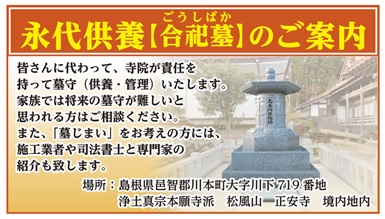 | 永代供養墓 | 島根県邑智郡川本町 大字川下714番地1 (正安寺の境内地) |